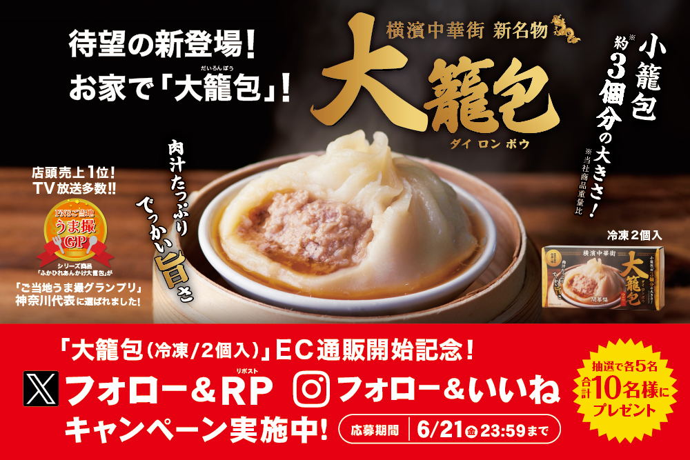 EC通販開始記念!X&Instagram「大籠包」プレゼントキャンペーン実施中!(~6/21迄)」