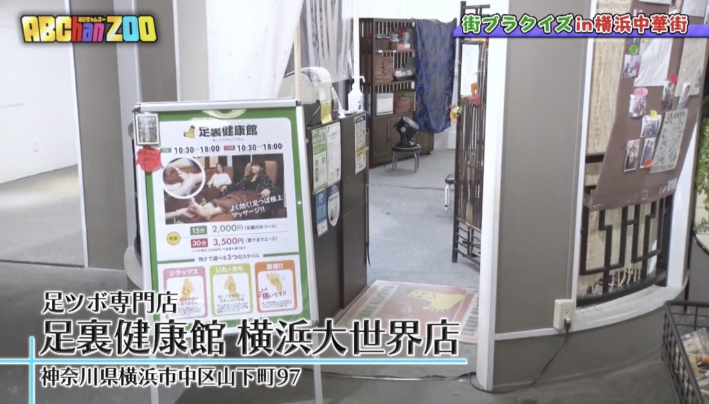 横浜大世界3Fのイタくって気持ちいい!「足裏健康館」が11/19放送のテレビ東京「ABChanZOO」‟大人気スポットを巡りながら絶品中華をかけたクイズバトル!”で紹介されました!